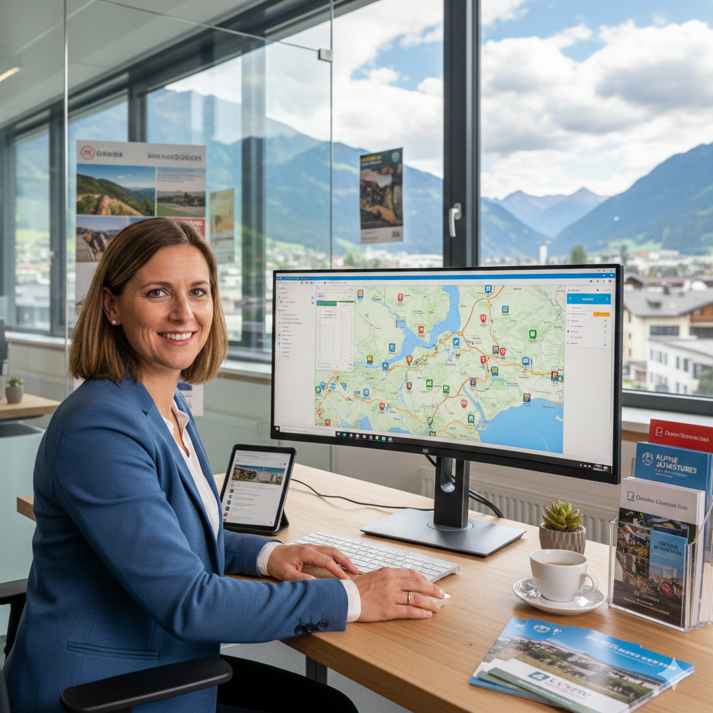 Es ist früher Morgen, Theresa vom Tourismusverband startet ihren Tag im Büro. Die ersten E-Mails trudeln ein. Und die Fragen, die alle umtreibt, sind die gleichen wie jeden Tag: Wie entwickeln sich die Buchungen? Sind die Zimmerpreise konkurrenzfähig? Beeinflusst der ausbleibende Schnee die Buchungen? Und was muss kommuniziert werden, damit Gastgeber:innen und Leistungsträger:innen richtig reagieren können?